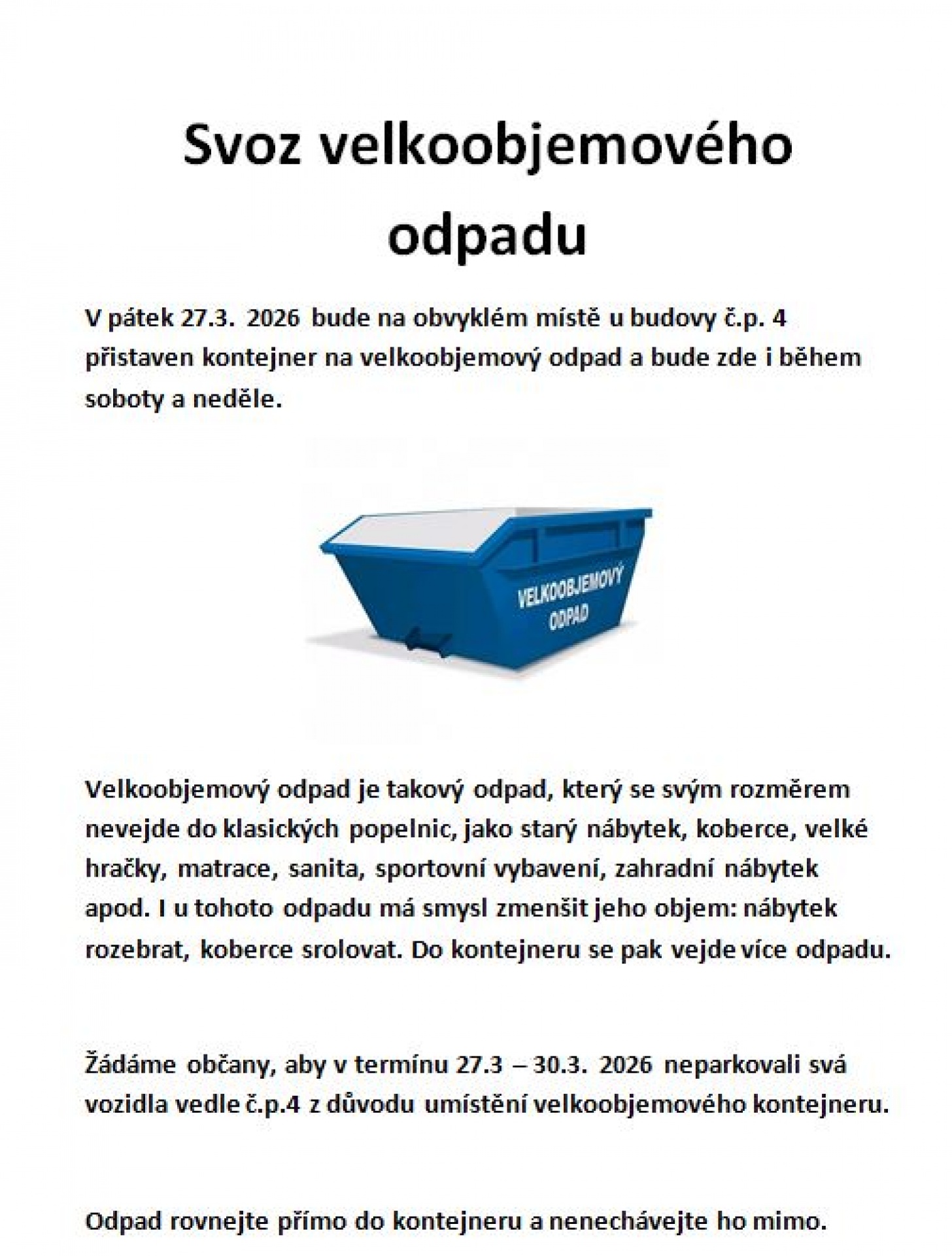 Poplatek je splatný do 30.4.2026. Předpis poplatku obdržíte do svých schránek během února 2026.